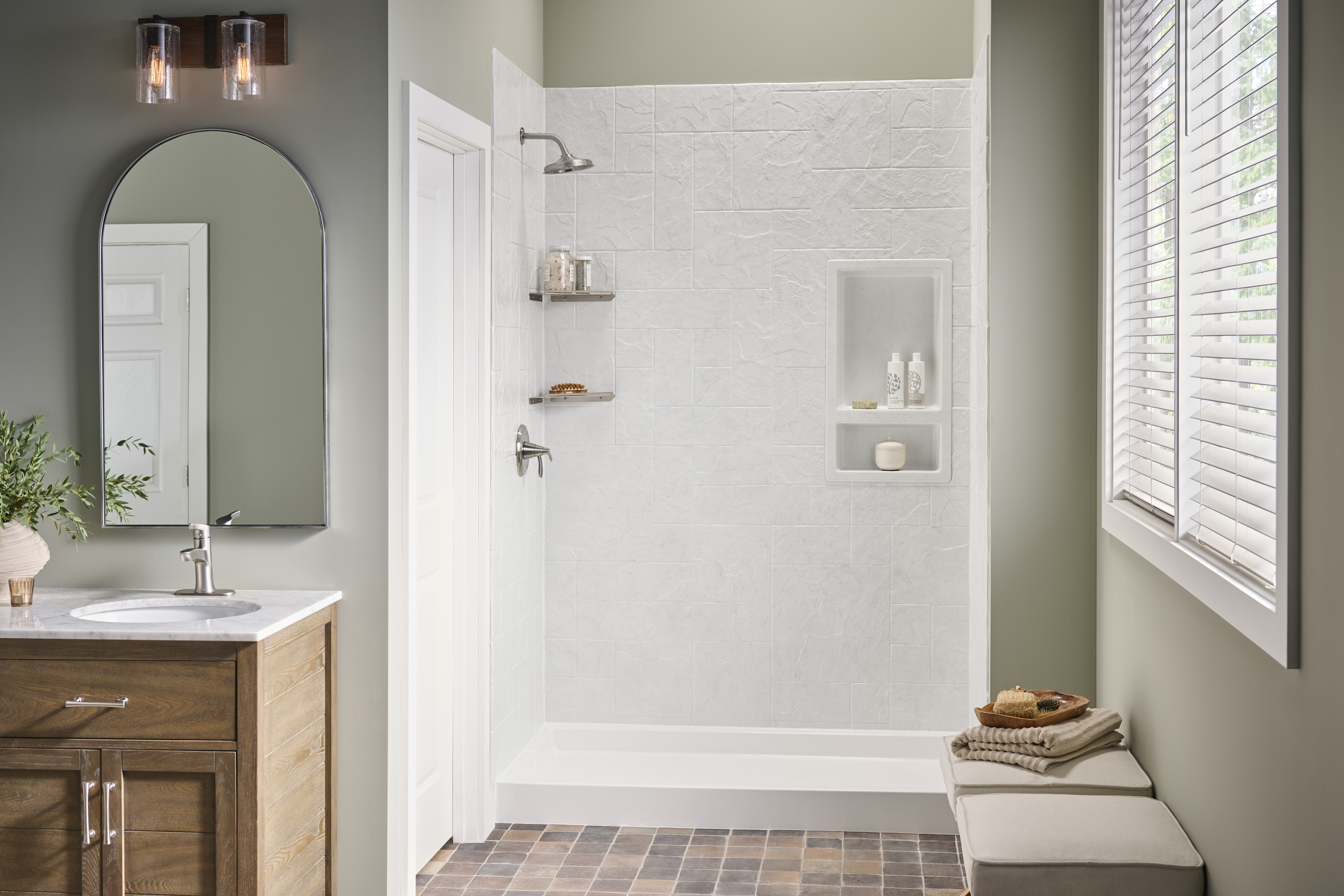 If you like the look of tile but want faster cleaning and fewer seams, acrylic wall systems are a smart choice. Todayโs panels offer stone and subway looks with realistic patterns, and they install efficiently with no grout to scrub. You can still create accent walls and niche backs for a designer focal point.